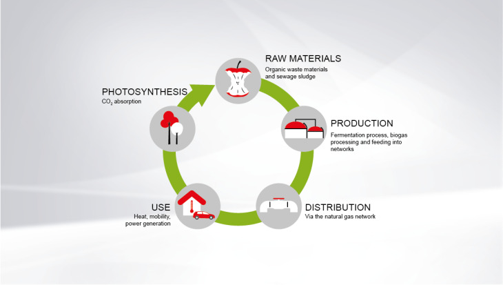 The characteristics of biomethane make it almost a twin to natural gas. However, it is produced sustainably from biogenic waste: food waste, damaged timber, sewage sludge or manure from the agricultural industry are processed into raw biogas via fermentation. This can then be fed into the existing gas networks in the form of biomethane. Electricity is only needed to control the plants. Another benefit is that the value created remains with the specialised farmers or recycling facilities in the region.