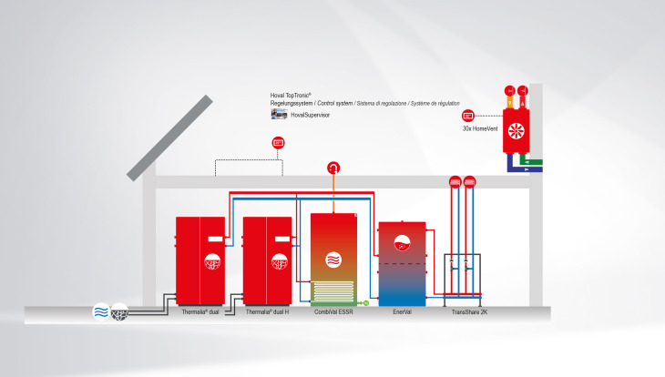 Die Software HovalSupervisor macht die gesamte Heizungsanlage auf dem PC schematisch sichtbar. Sie sammelt sämtliche Leistungsdaten des Heizsystems und bereitet diese für die Analyse auf, damit der Betrieb der Anlage stetig weiter optimiert werden kann.