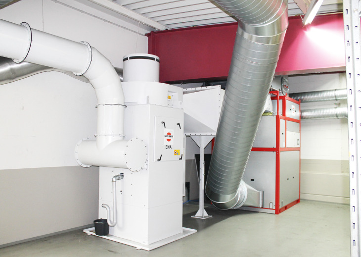 So entschied sich der Unternehmer, die teilweise vorhandenen dezentralen Ölnebelabscheider zu demontieren und ein neues Gesamtsystem für eine zuverlässige Absaugung an insgesamt elf Maschinen zu beschaffen. „Eine solche Anlage bläst stündlich rund 10.000 Kubikmeter warme Hallenluft ins Freie. Frische Luft strömt dafür ein. In der kalten Jahreszeit muss sie erst einmal unter hohem Energieeinsatz erwärmt werden“, erklärt Roland Fischer.