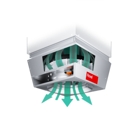 Kernstück der Hallenklima-Systeme ist der patentierte Air-Injector von Hoval. Er sichert die zugfreie Einbringung der Luft und höchsteLüftungseffizienz. Eine eigens entwickelte Software regelt die einzelnen Geräte individuell, steuert ihr Zusammenspiel und sorgt so für eine optimale Nutzung der Ressourcen. Und damit für niedrigste Betriebskosten.