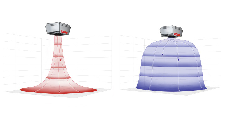 Der Air-Injector sorgt im Heiz- und Kühlmodus automatisch für optimale Luftverteilung bei minimaler Luftgeschwindigkeit.