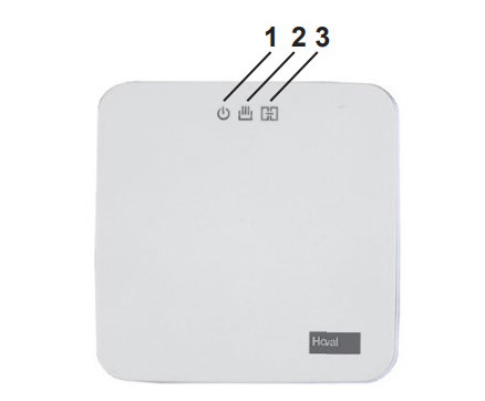 Die linke LED leuchtet und zeigt an, dass die Spannungsversorgung per CAN-Bus oder externer Versorgung gewährleistet ist. Hoval empfiehlt bei WLAN Gateways eine externe Stromversorgung mit einem Netzteil sicherzustellen.