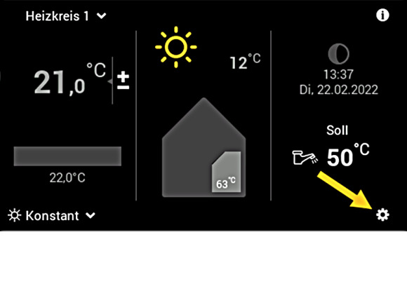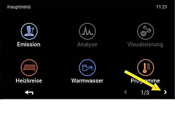 Klicken Sie unten rechts auf den Pfeil um auf die 2. Seite mit Einstellungsmenüs zu gelangen.