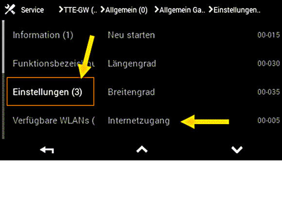 In der Linie Internetzugang klicken Sie auf den Parameter rechts (zeigt beliebigen Text an).