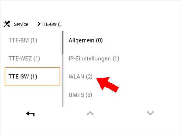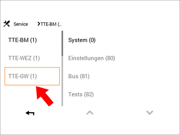 Note: If the “TTE-GW” option is not immediately visible, click on the arrow button at the bottom right to scroll down until the “TTE-GW” menu item appears.