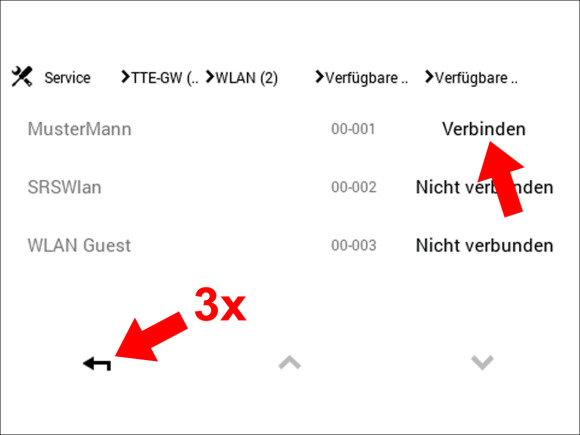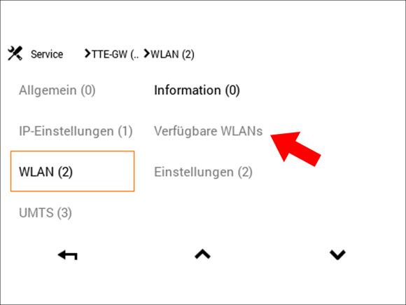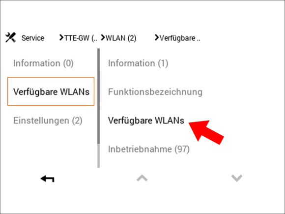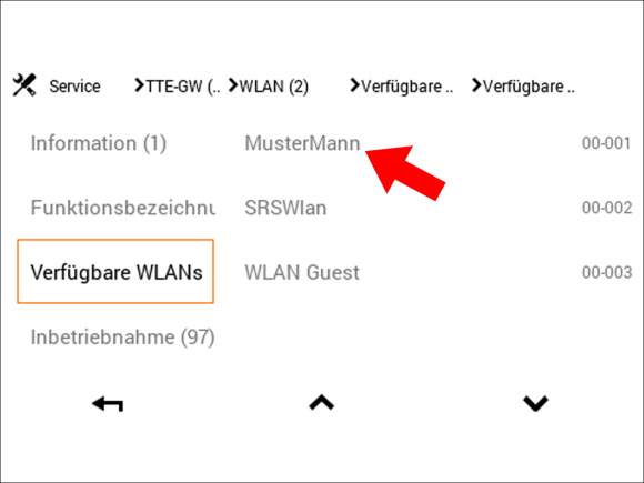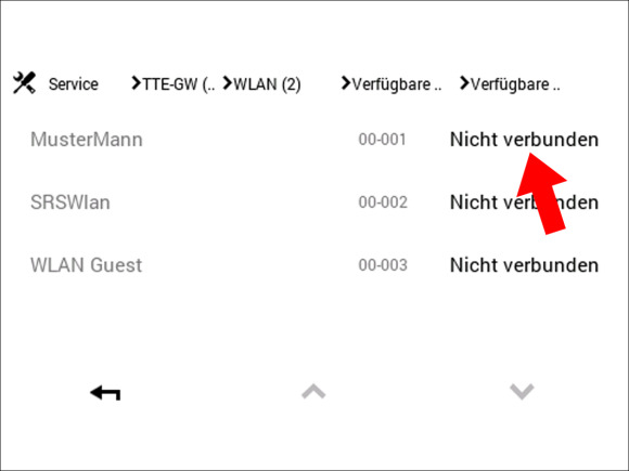Note: If the WLAN you want is not immediately visible, click on the arrow button at the bottom right to scroll down until the WLAN you want appears.