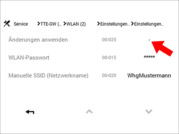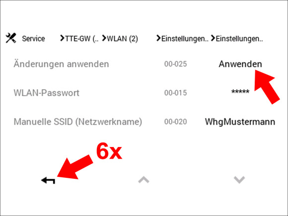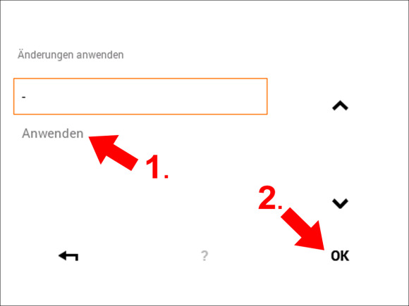 Check that the text “Apply” is displayed on the right in the “Apply changes” row. Finally, click on the “Back” button at the bottom left six times to return to the home screen.