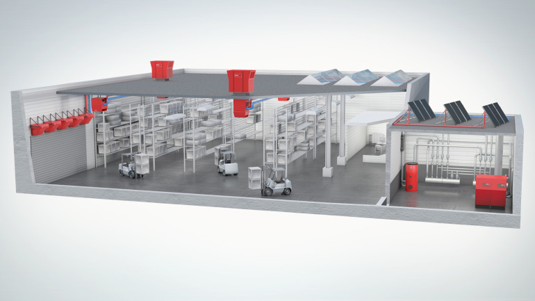 Hoval’s indoor climate systems are energy-saving champions. They reduce temperature stratification within a space, which minimises the amount of heat lost through the roof. And due to their high degree of ventilation efficiency, less air needs to be circulated and treated overall; this saves on electrical operating power and lowers the ventilation heat requirement.