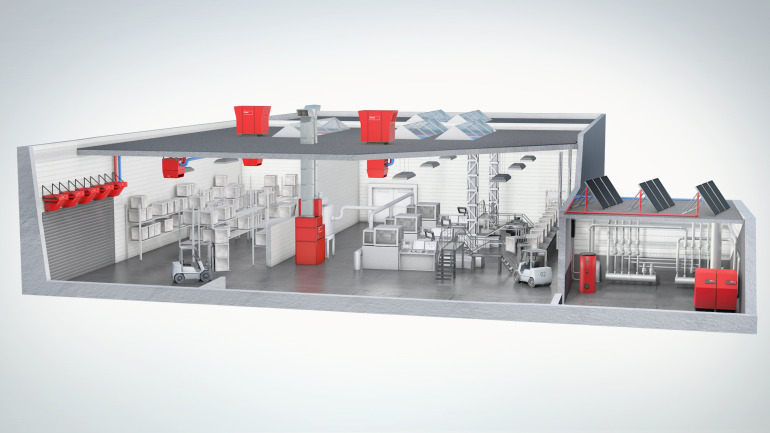 The process of machining metals or manufacturing electronic components creates a lot of atmospheric pollution. Room air in the buildings where these processes are performed should be replaced continually so as to protect employees from this contamination as they go about their work. Hoval indoor climate systems significantly improve air quality. Different indoor climate units can be combined to produce optimum air quality and a perfect production process environment for any field of work. Waste process heat can also serve to heat the hall during winter, thus improving energy efficiency and reducing operating costs. All in all, this is a good investment that more than pays for itself over time.